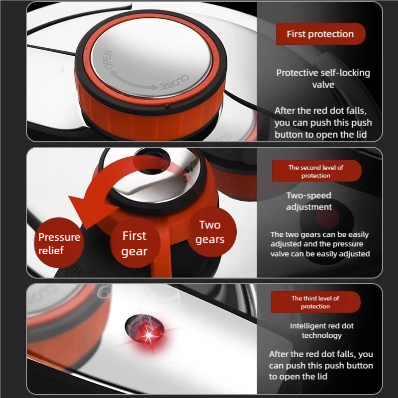 【Widely Used】:Pressure pot can cook rice, soup, chicken, meat and so on. Save time and retain the flavor of food.