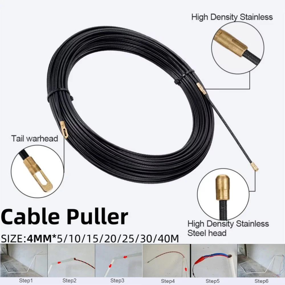 4mm 5M-40M Cable Puller Guide Push Puller Nylon Wall Wire Lead Electrician Spring Tape Conduit Threader Puller Wiring Aid Tool