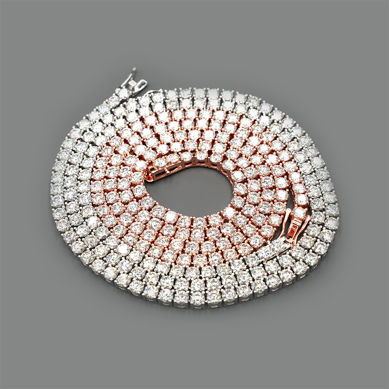 4mm 925 Silver Inlaid Moissanite Hip-Hop Single-Stone Men's Tennis Chain White Gold Color 6 Inches