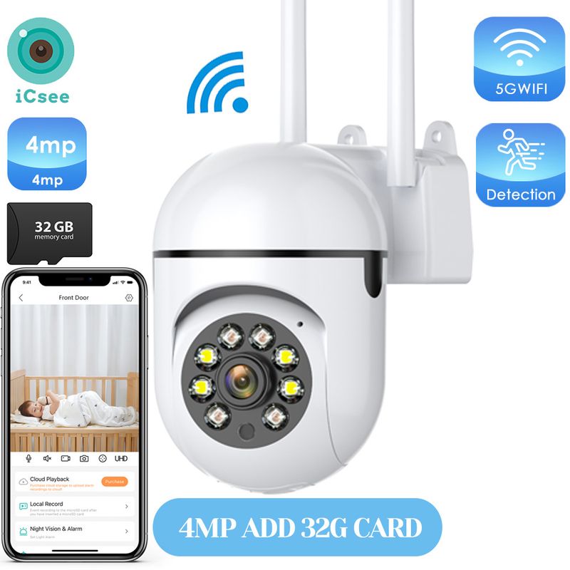4MP Outdoors Wifi Camera 2K HD Security PTZ IP Camera AI Auto Detect Tracking Indoor Baby Night Color Camera Surveillance ICSee