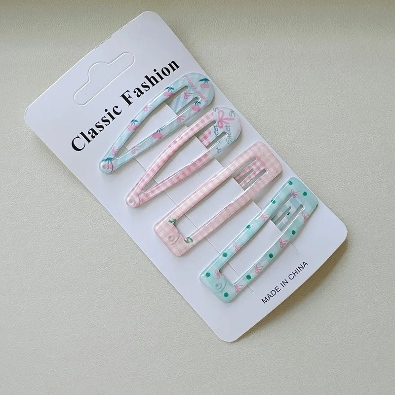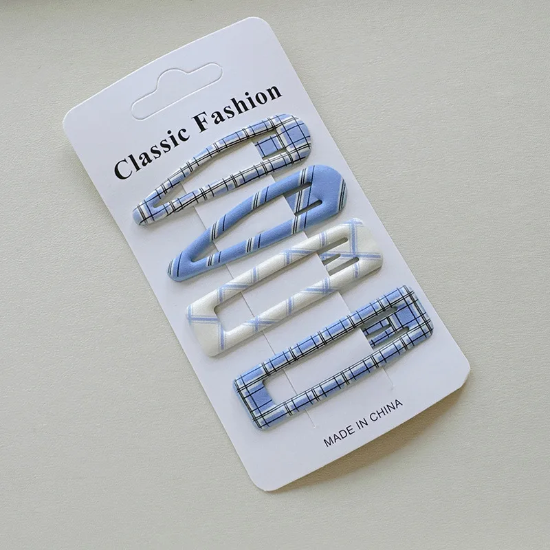 4pc Fashion College Plaid BB Hairpin Hair Side Clips for Girls Women Korean Hair Accessories