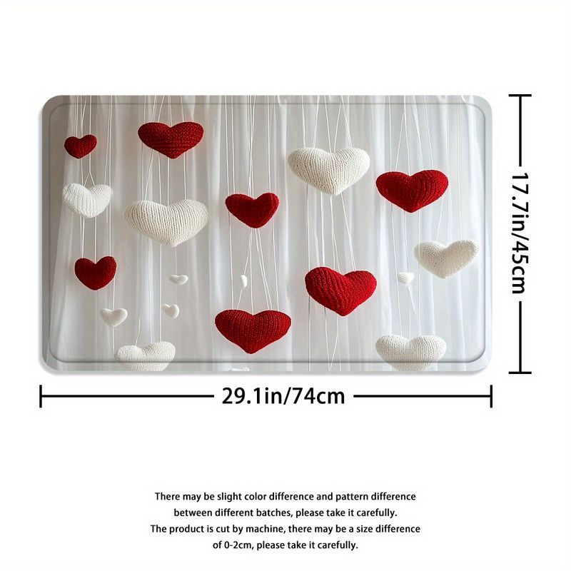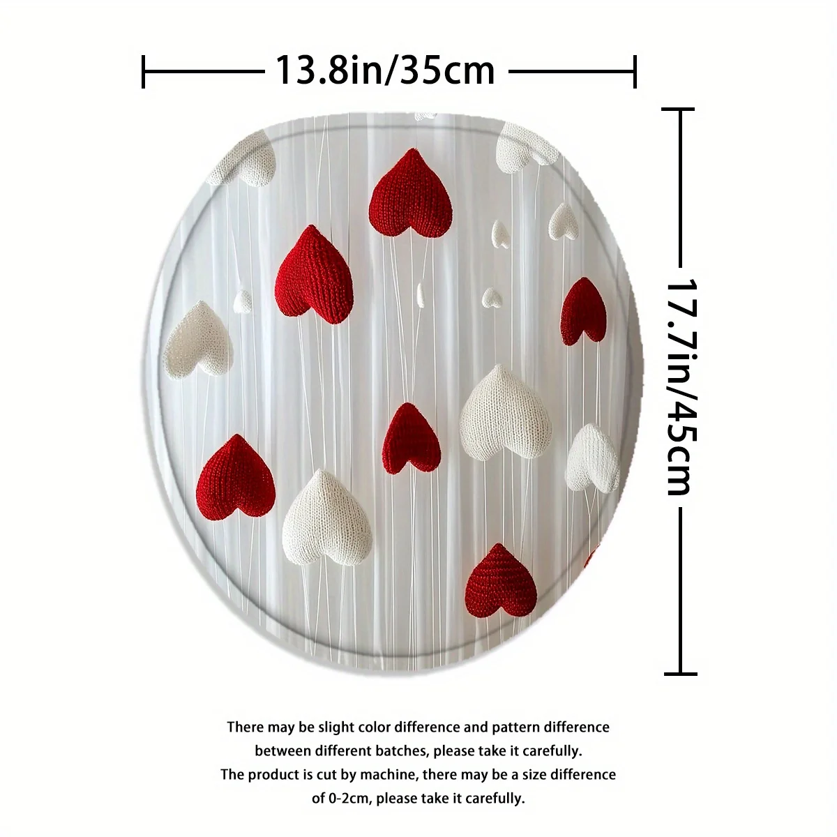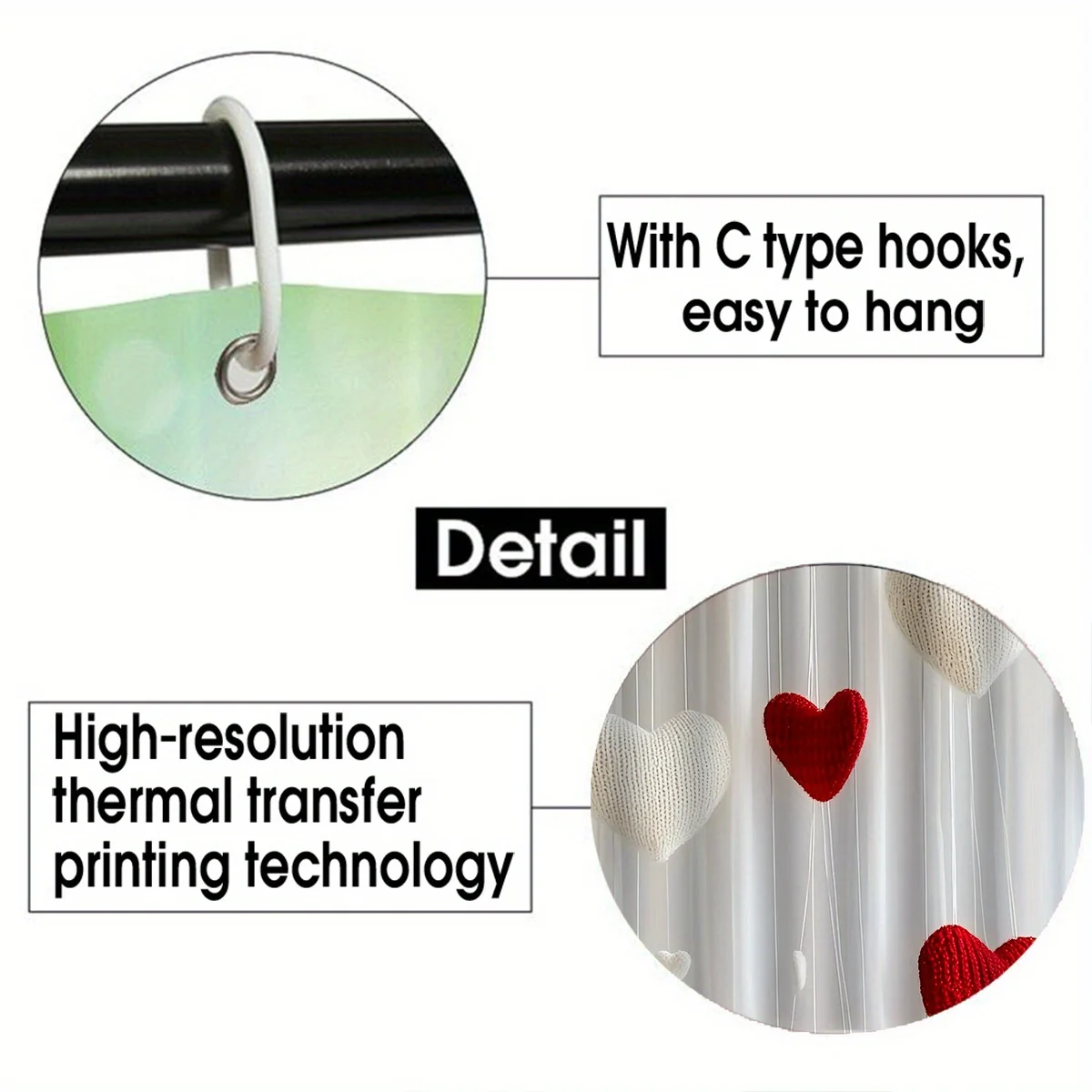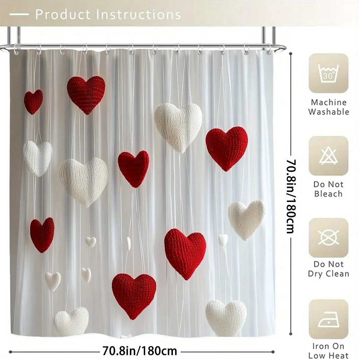 4pc Home Decor Heart-print bathroom decor, shower curtain with hooks, non-slip bathroom rug, U-shaped mat, toilet seat cover