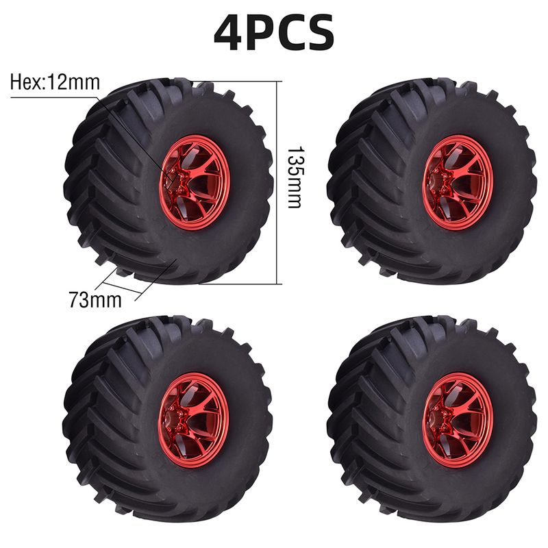 4PCS 12mm Hub Wheels Set Foam Inserts Tires for 1:10 Monster Truck Off Road Traxxas Scx10 HPI HSP Savage Buggy Tamiya Kyosho