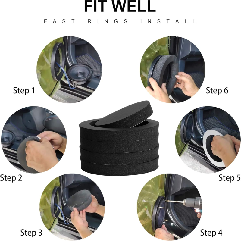 4PCS 4/5/6.5 Inch Car Speaker Sound Insulation Ring Cotton Bass Door Trim Soundproof Foam Pad Self Adhesive Soundproof Cotton