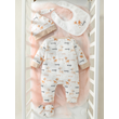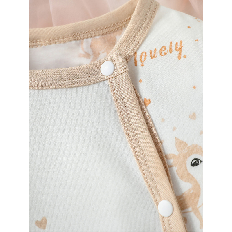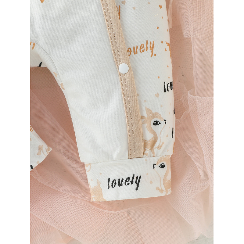 4Pcs Baby Girls Long Sleeve All Seasons Cartoon Deer Open Stitch pastorale Jumpsuit+Bib+Gloves+Hat