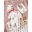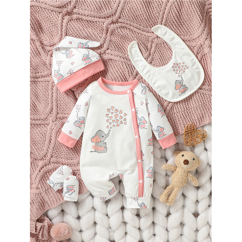4Pcs Baby Girls Long Sleeve All Seasons Cartoon Deer Open Stitch pastorale Jumpsuit+Bib+Gloves+Hat