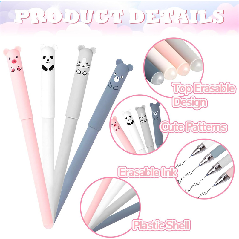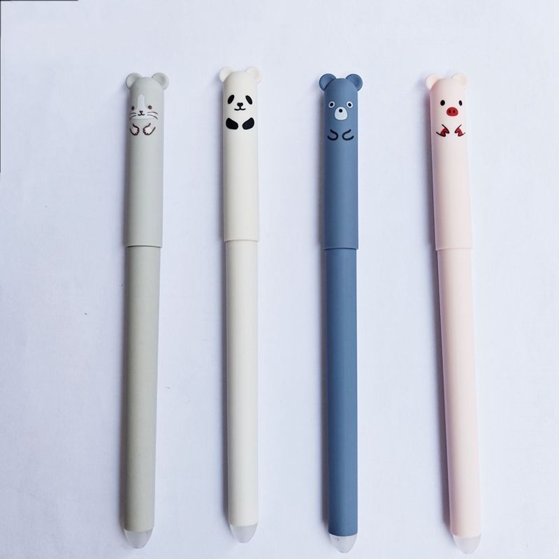 4Pcs Blank Kawaii Animals Panda Erasable Gel Pen 0.5mm Blue Black Erasable Pen Washable Handle School Supplies Stationery