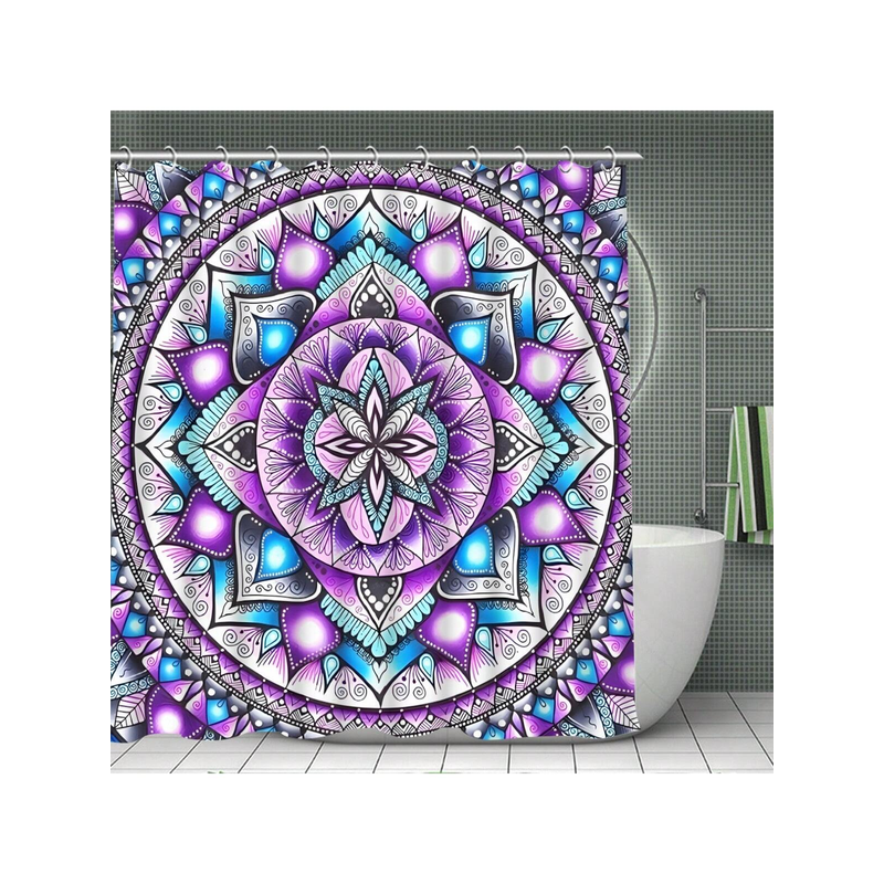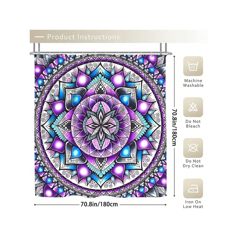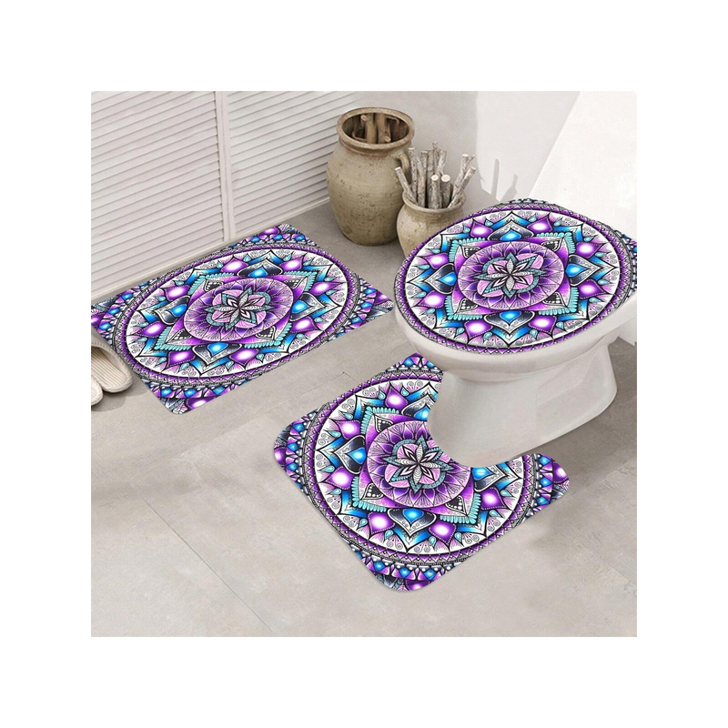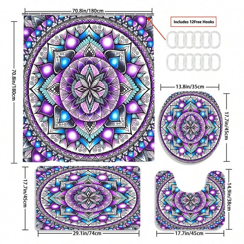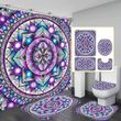 4PCS Bohemian Shower Curtain Sets, Purple Mandala Printed Bathroom Shower Curtains, Bath Mat, Toilet Lid Rug