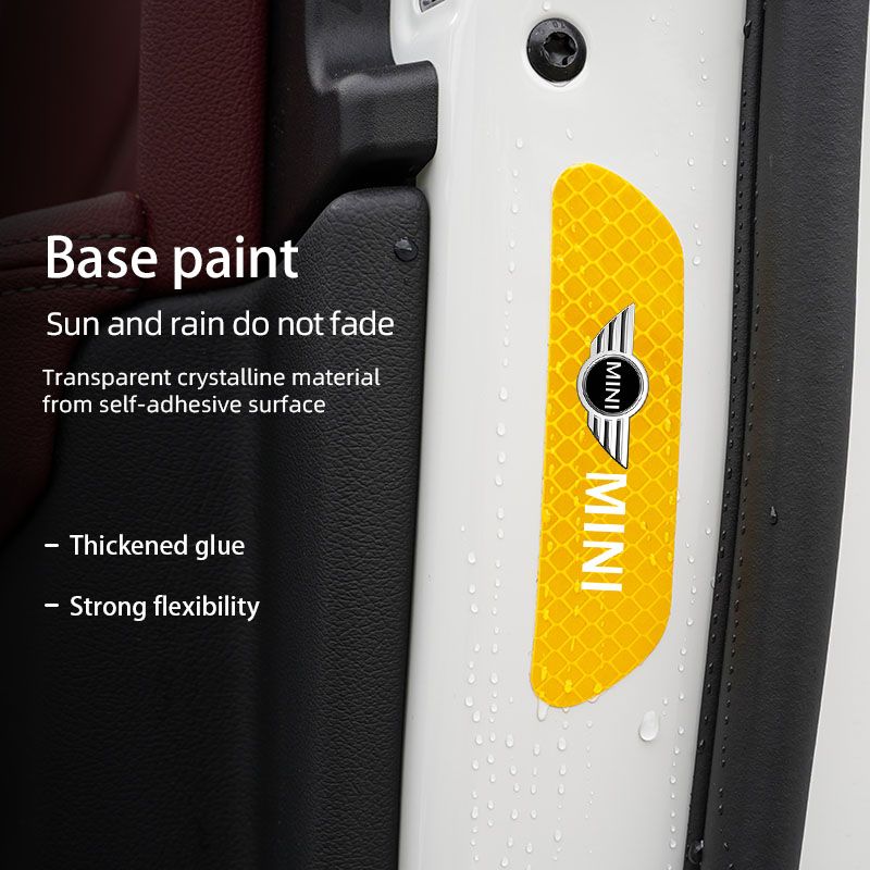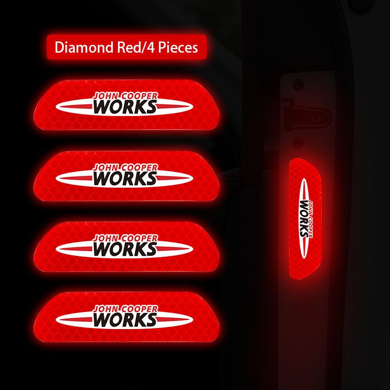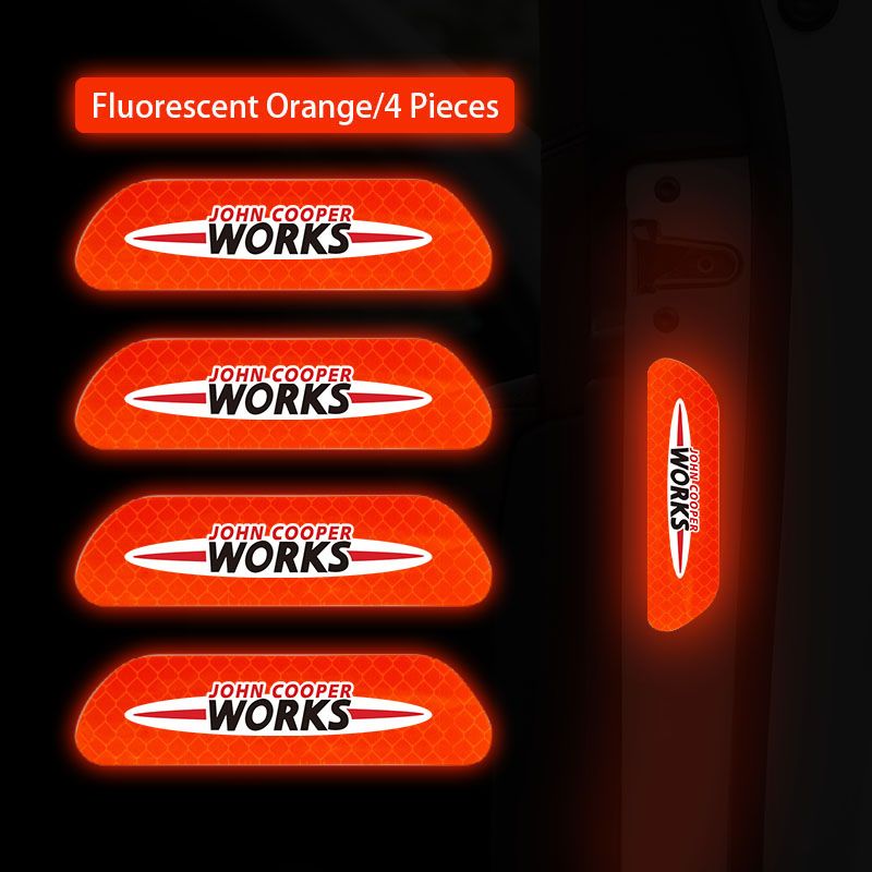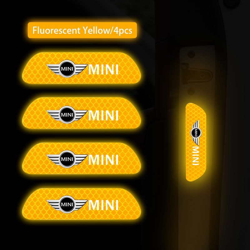 4Pcs Car Stickers Portable Safety Warning Reflective Decal For MINI JCW Cabrio Cooper Countryman Aceman Clubman Coupe Paceman Roadster F57 F56 F55 F54 R61 R60 R59 R58 R57 R56 R55 R53 R52 R50