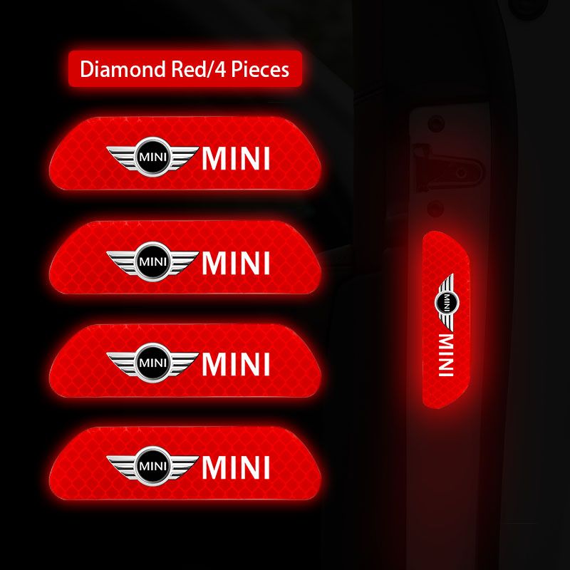 4Pcs Car Stickers Portable Safety Warning Reflective Decal For MINI JCW Cabrio Cooper Countryman Aceman Clubman Coupe Paceman Roadster F57 F56 F55 F54 R61 R60 R59 R58 R57 R56 R55 R53 R52 R50