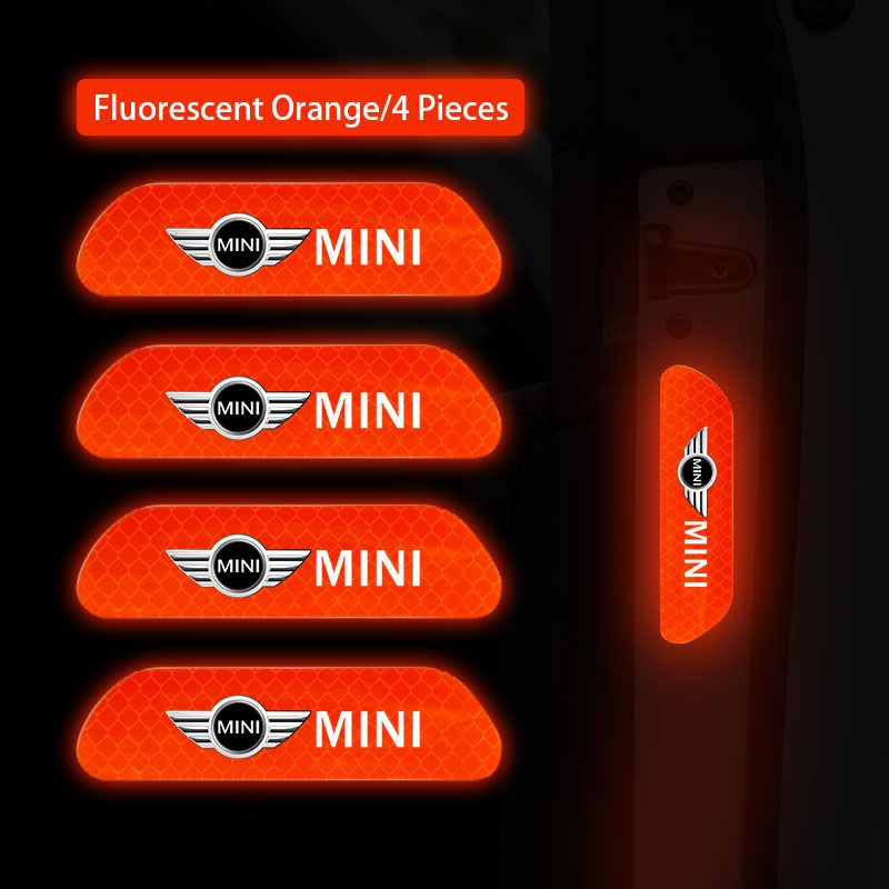4Pcs Car Stickers Portable Safety Warning Reflective Decal For MINI JCW Cabrio Cooper Countryman Aceman Clubman Coupe Paceman Roadster F57 F56 F55 F54 R61 R60 R59 R58 R57 R56 R55 R53 R52 R50