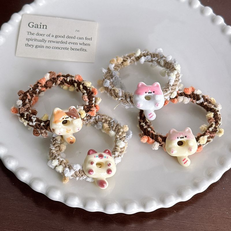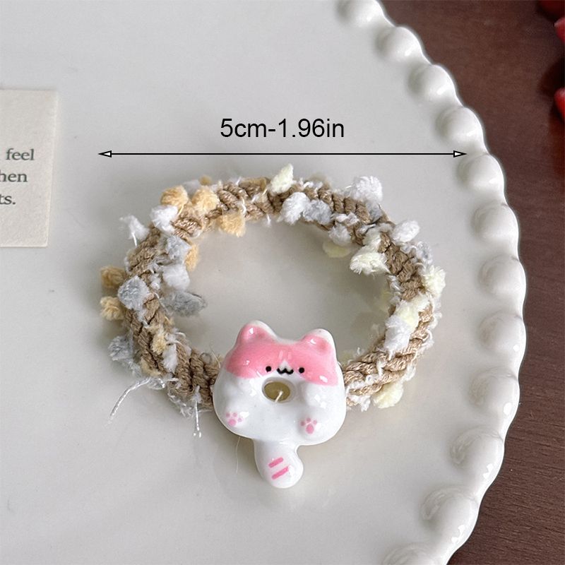 4pcs cute Japanese cartoon hair ring cat color bean hair ring ins girl sweet soft cute versatile rubber band hairband headdress