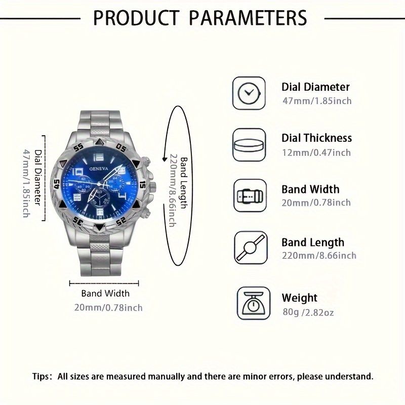 4pcs fashionable men's quartz watch - stainless steel strap, round zinc alloy case, electronic sports