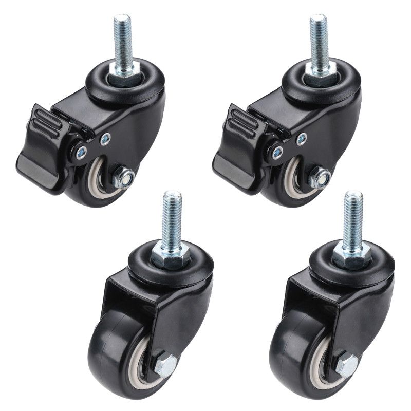 4pcs Heavy Duty Furniture Caster Wheels 180kg Load 1.5 Inch M8 Screw 40mm Chair Sofa Swivel Castors with Trolley Brake Rubber