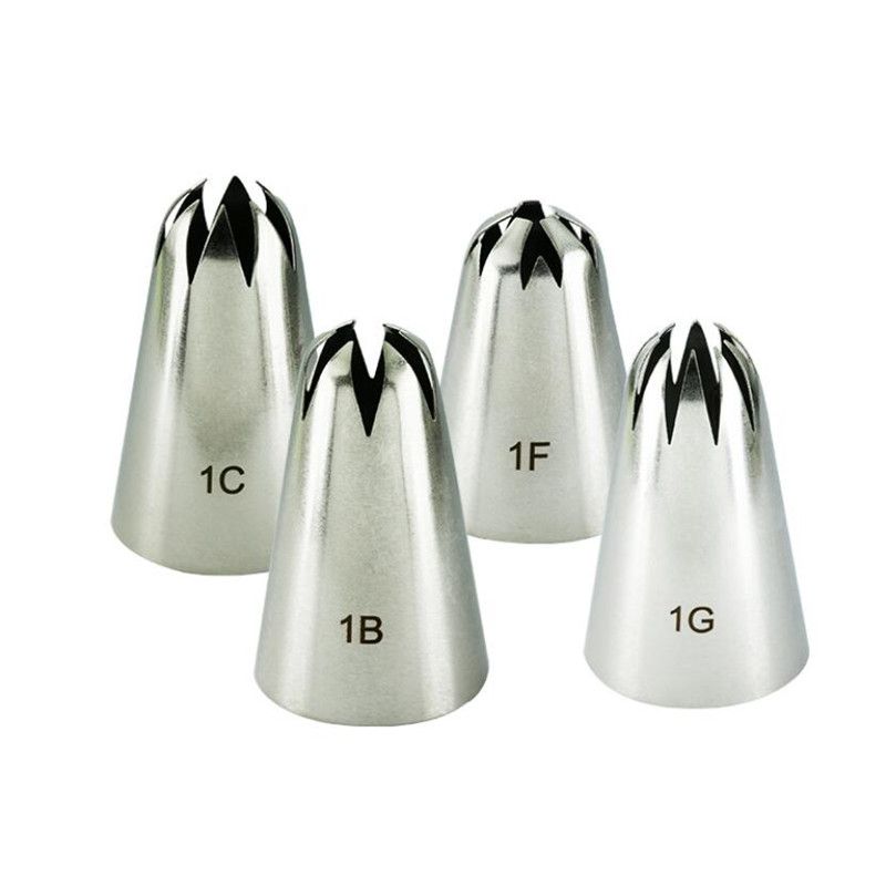 4pcs Large Icing Piping Nozzles For Decorating Cake Baking Cookie Cupcake Piping Nozzle Stainless Steel Pastry Tips #1B#1C#1E#1G