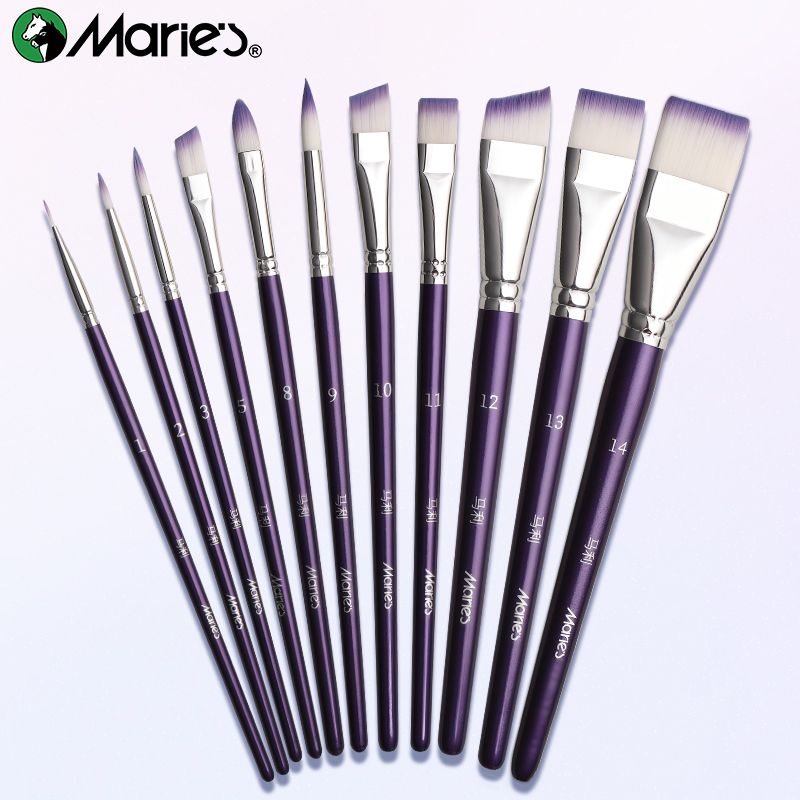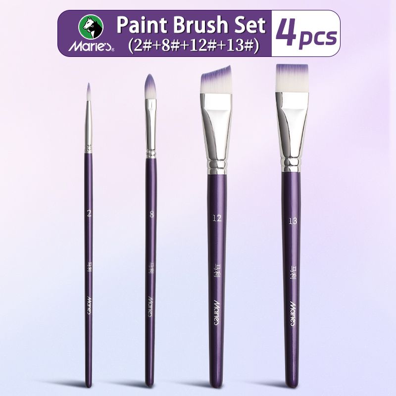 4pcs Marie's Painting Brush Kit,Brush for Acrylic,Includes Detail,Stamp,Angle & Flat,Watercolor,Gouache,Tempera,Oil,for Adult