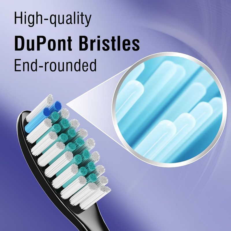 4Pcs Replacement Toothbrush Heads Compatible with Fairywill Electric Toothbrushes Only Fit Model P80 P11 P9 and T9 ,Black,white
