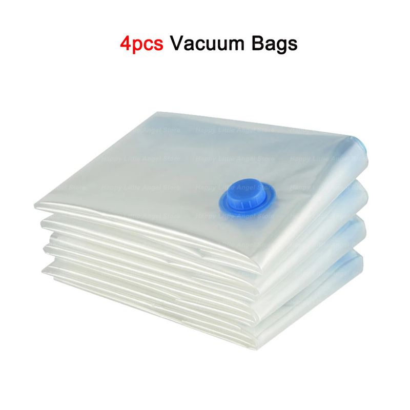 4pcs Reusable Vacuum Bags Transparent Folding Compressed Space Saving Vacuum Bag for Clothes Large Travel Container
