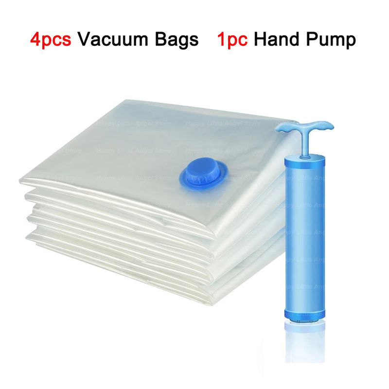 4pcs Reusable Vacuum Bags Transparent Folding Compressed Space Saving Vacuum Bag for Clothes Large Travel Container