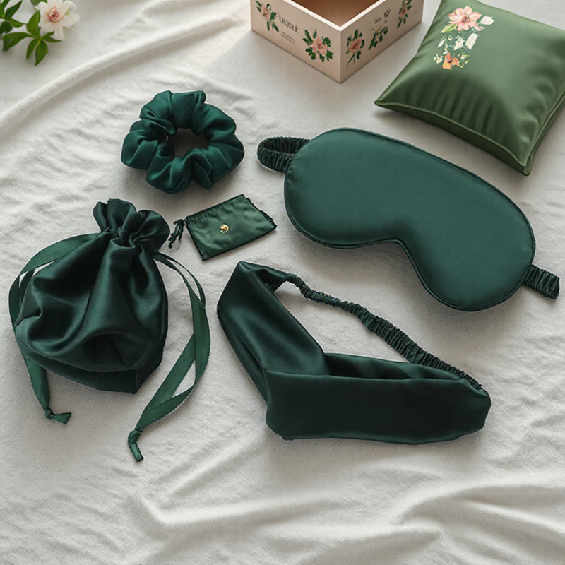 4PCS Silk Eye Mask Set with Hair Bands and Storage Bag Comfortable Sleeping Mask for Travel and Home Use