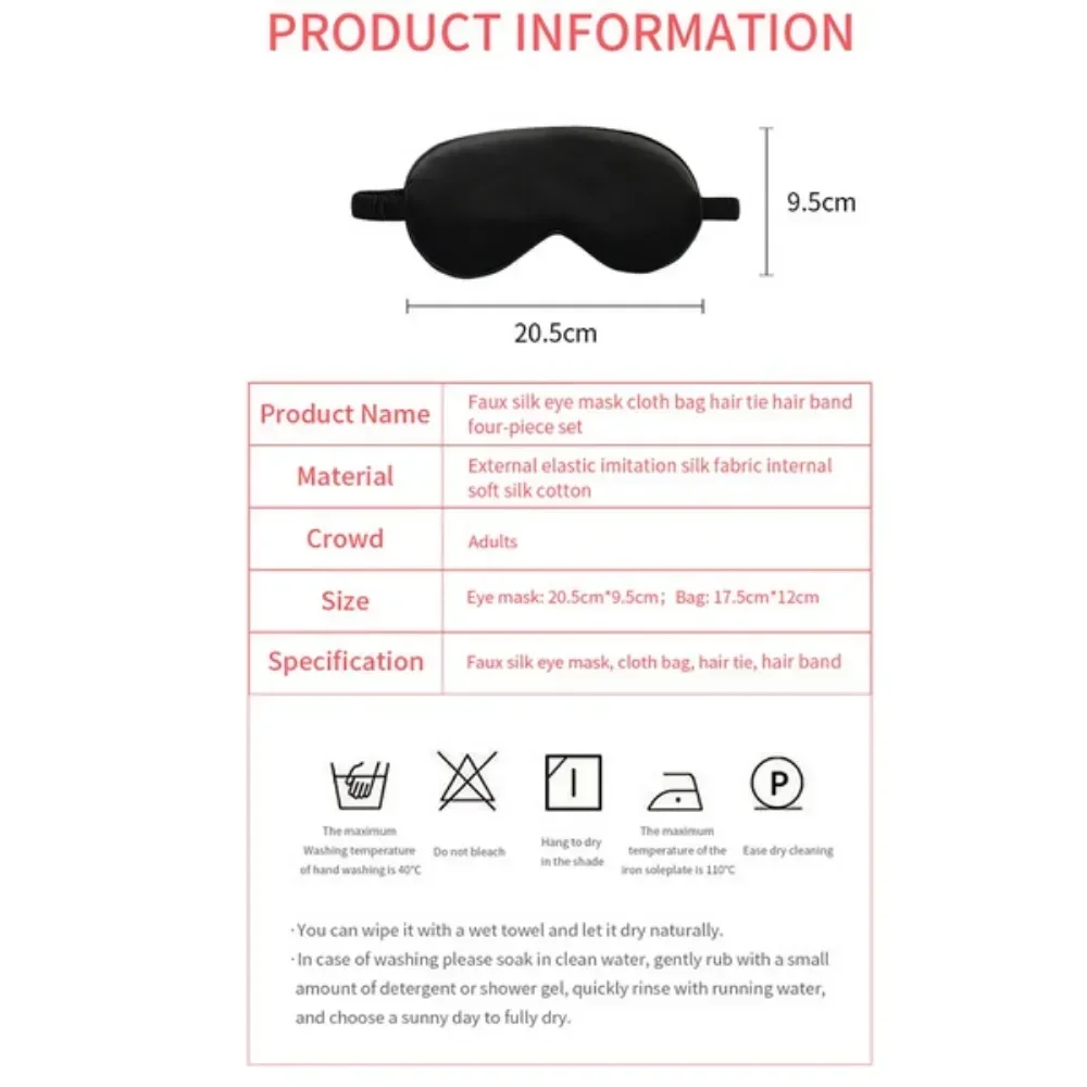 Product Name : Faux silk eye mask cloth bag hair tie hair band four-piece set.