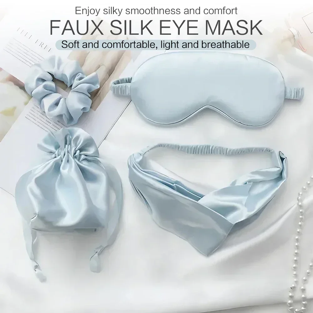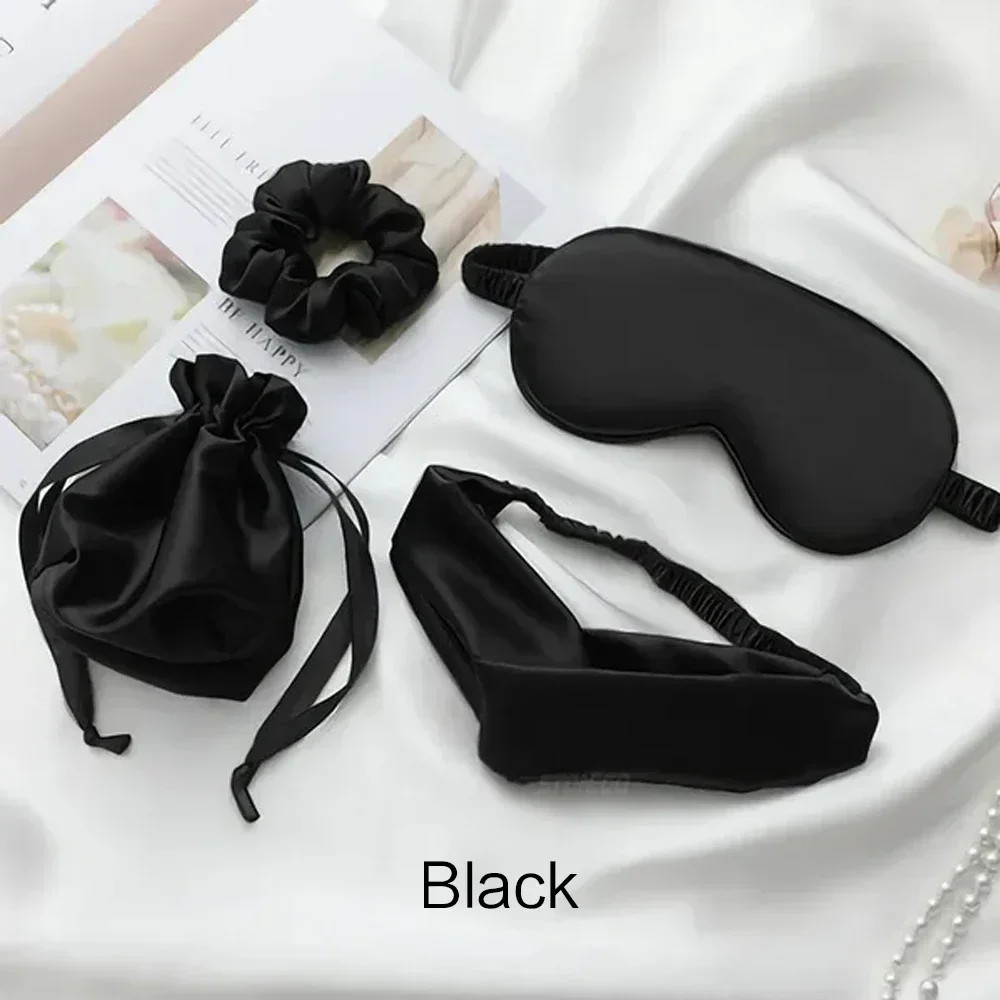 4Pcs/Set Eye Mask Set(1 X Eye Mask,1 X Cloth Bag,1 X Headband,1 X Hair Tie)