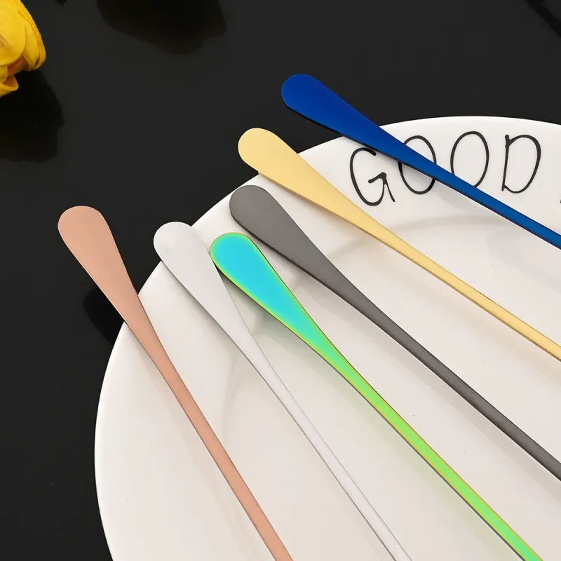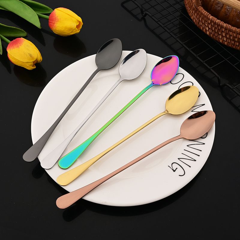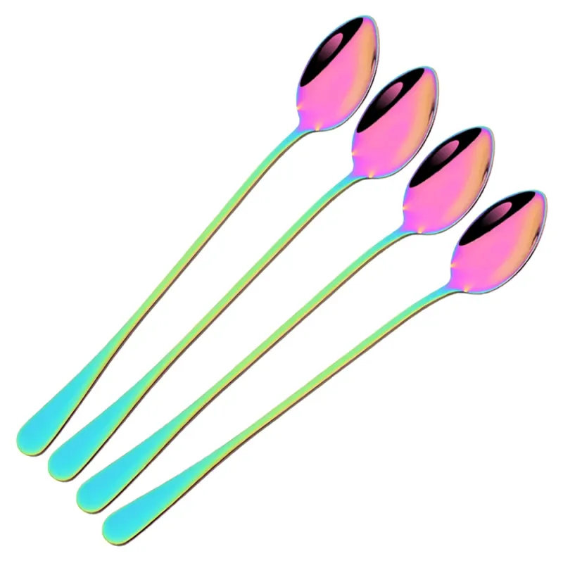 4Pcs Stainless Steel Long Handled Spoon Set Shiny Stirring Coffee Dessert Spoon Suitable for Milk Tea Juice Milkshakes Ice Cream
