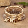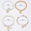 4Pcs Trendy Butterfly Beaded Bracelet Set For Women Pink Acrylic Beads Elastic Chain Bangle Female Bohemian Party Jewelry Gift