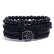 4Pcs/ Set Braided Wrap Leather Bracelets for Men Vintage Life Tree Rudder Charm Wood Beads Ethnic Tribal Wristband Rope Bracelet