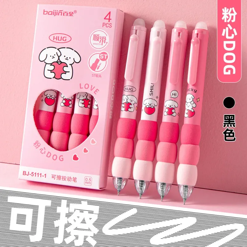 4PCS/Box Soft Cloud Grip Erasable Press Gel Pen ST Tip Quick Drying Ballpoint Pen Student 0.5mm Black Ink Office Accessories
