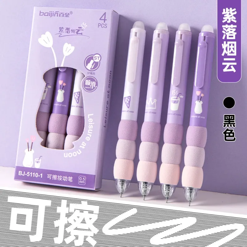 4PCS/Box Soft Cloud Grip Erasable Press Gel Pen ST Tip Quick Drying Ballpoint Pen Student 0.5mm Black Ink Office Accessories
