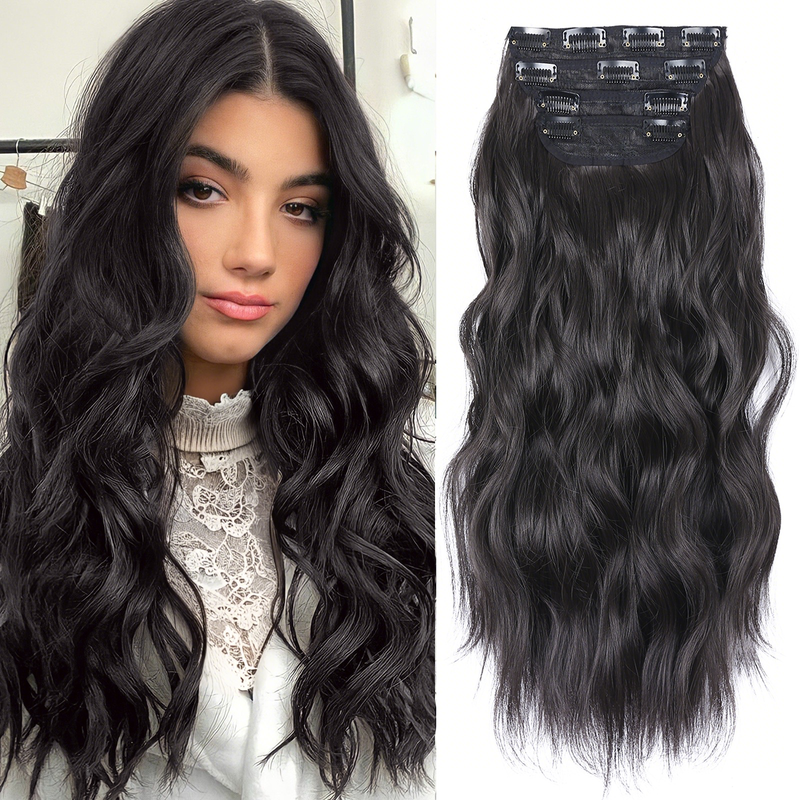 4Pcs/Set 20Inch Synthetic Hair Clip In Long Wavy Thick Hairpieces For Women Full Head Synthetic Hair Extensions Ombre Hairpieces