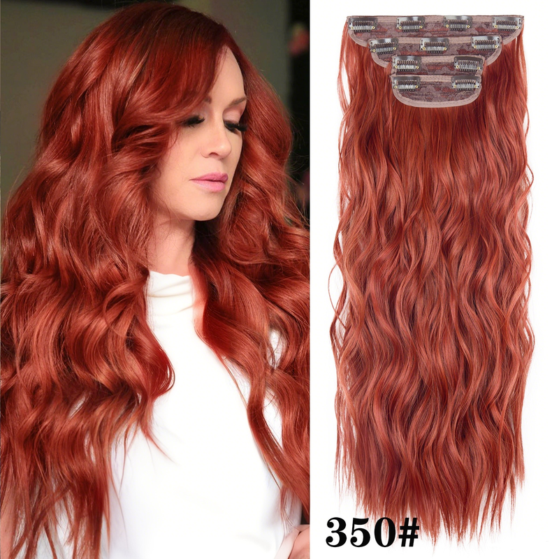 4Pcs/Set 20Inch Synthetic Hair Clip In Long Wavy Thick Hairpieces For Women Full Head Synthetic Hair Extensions Ombre Hairpieces