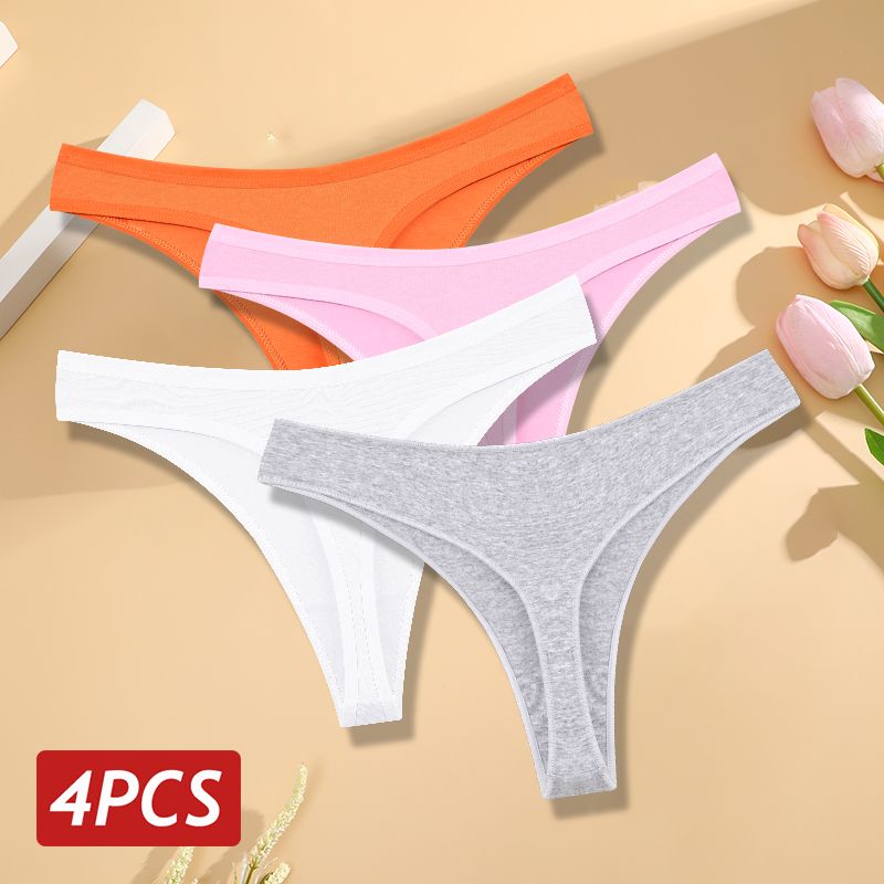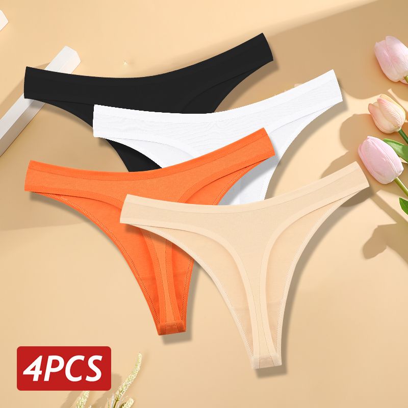 4PCS/Set Seamless Cotton Panties for Women Sexy Low Rise Thong G-String Panty Female V-Waist Breathable Underwear Soft Lingerie