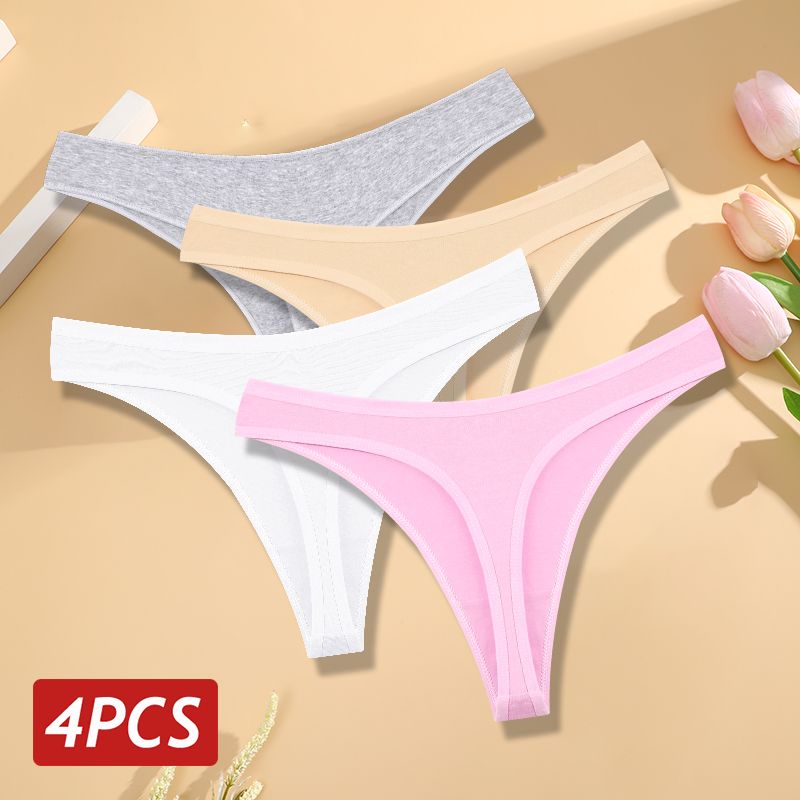 4PCS/Set Women Cotton Panties Seamless Low Rise Thongs V-Waist Solid Color Breathable Underwear Female Soft Lingerie Intimates