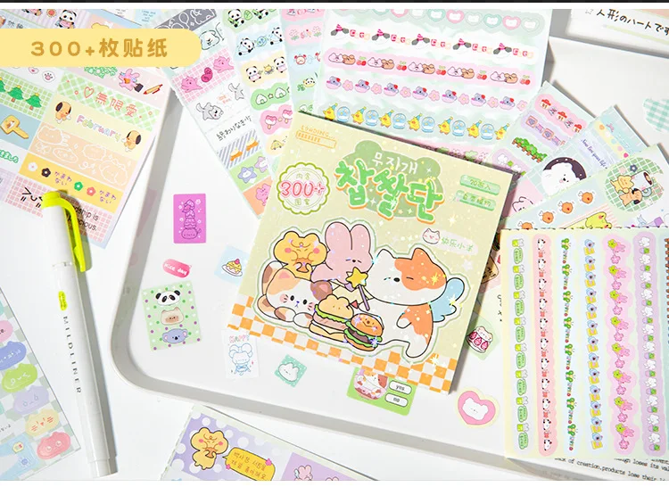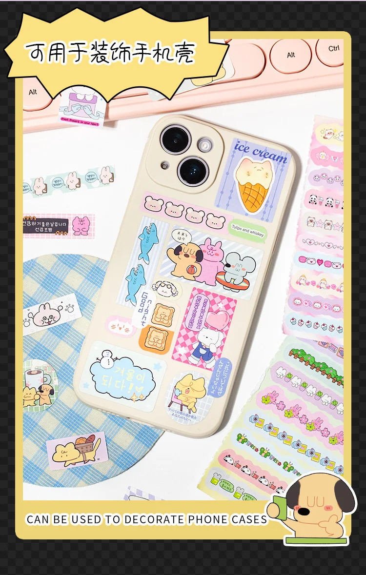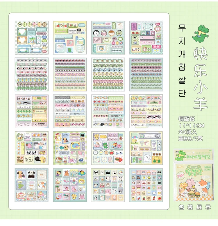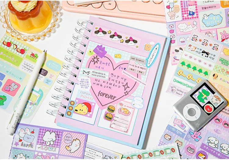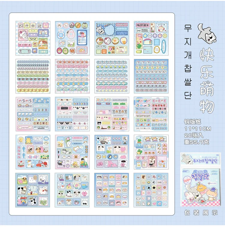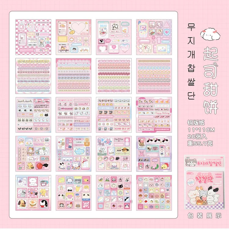 4style 20sheets Kawaii Korean cartoon pet theme glitter film die-cutting decorative sticker book DIY handmade scrapbook