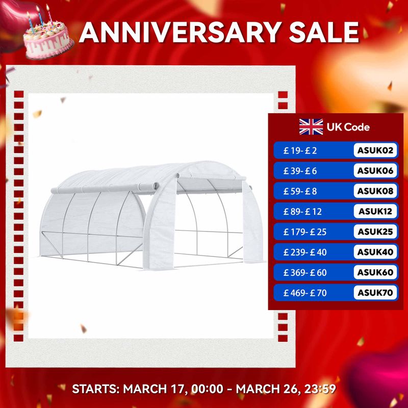 This Outsunny garden polytunnel greenhouse is perfect for the home gardening enthusiast. Grow plenty of plants, vegetables and more in its open and spacious design. The galvanised steel frame means a strong standing structure with the plastic mesh offering a safe shield for the inside. Both sides completely roll up to allow plenty of fresh air in. Complete with eight roll-up windows and a large roll-up door. 4 x guy ropes and 4 x ground stakes included.● Walk-in design is large and spacious, plenty of growing room