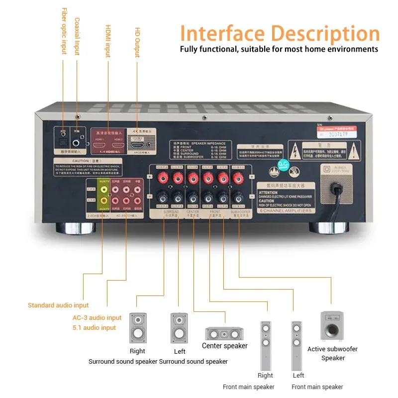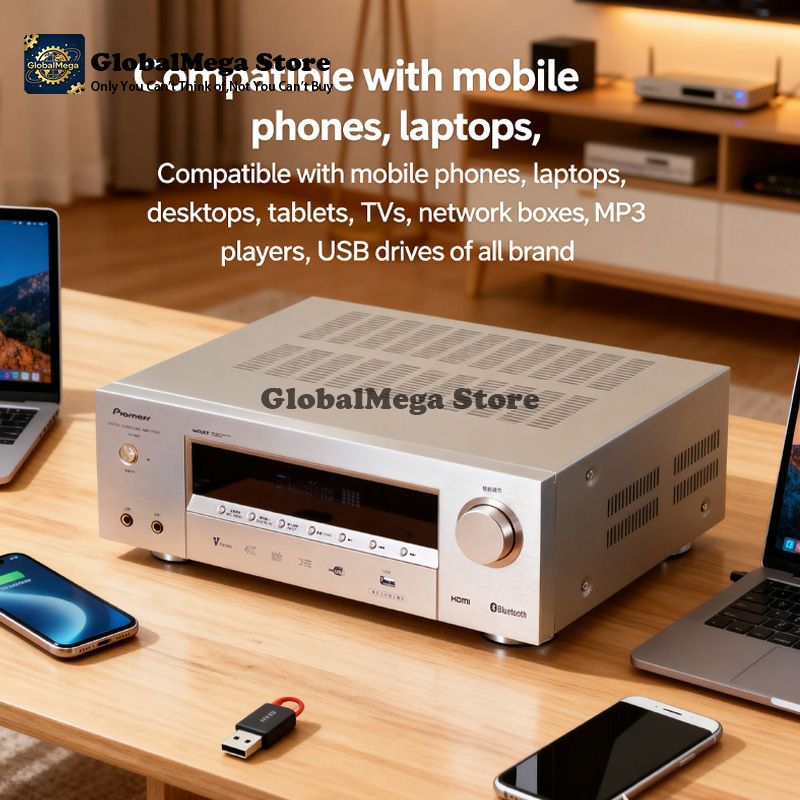 Multiple connectivity options including HDMI 1.4 with 4K/ARC,optical/coaxial inputs,Bluetooth 5.0,and USB playback with lossless audio support.