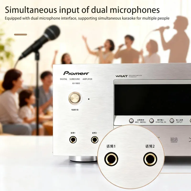 Dual microphone inputs with independent volume control transform your living room into a KTV entertainment space.