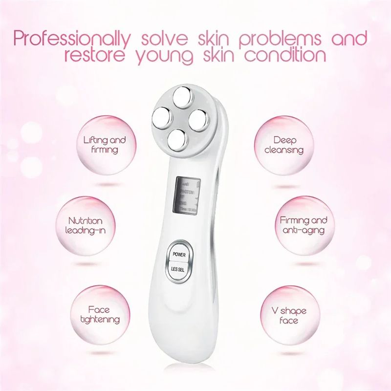 5-IN-1 EMS Facial Mesotherapy Electroporation LED Photon Skin Care Beauty Device Face Lifting Tighten Wrinkle Removal Massager