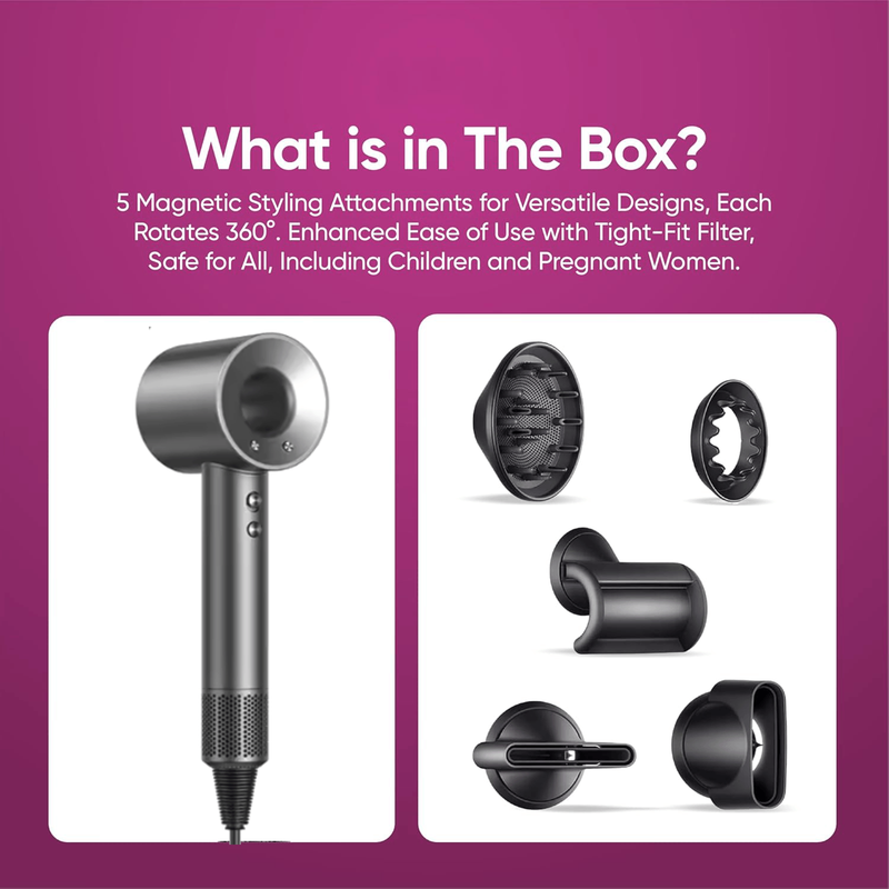 5 in 1 Professional Hair Dryer, with Hot and Cold Air Functionality - Lightweight and Thermostatic Styling Tool for Smooth Hair