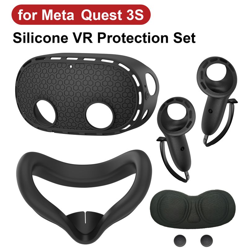 5 IN 1 Silicone Case For Meta Quest 3S VR Protector Lens Cap Soft Grip Cover Shockproof Durable Anti-scratch Accessories