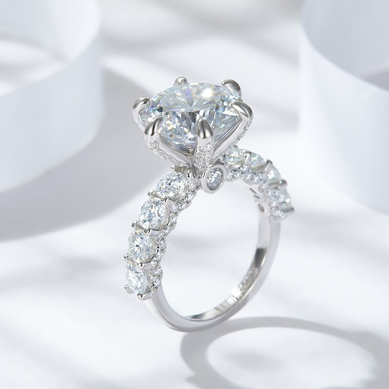 5 Karat Fireworks Cut Full Moissanite Luxury Ring US Size 4.5 Main Stone 5ct