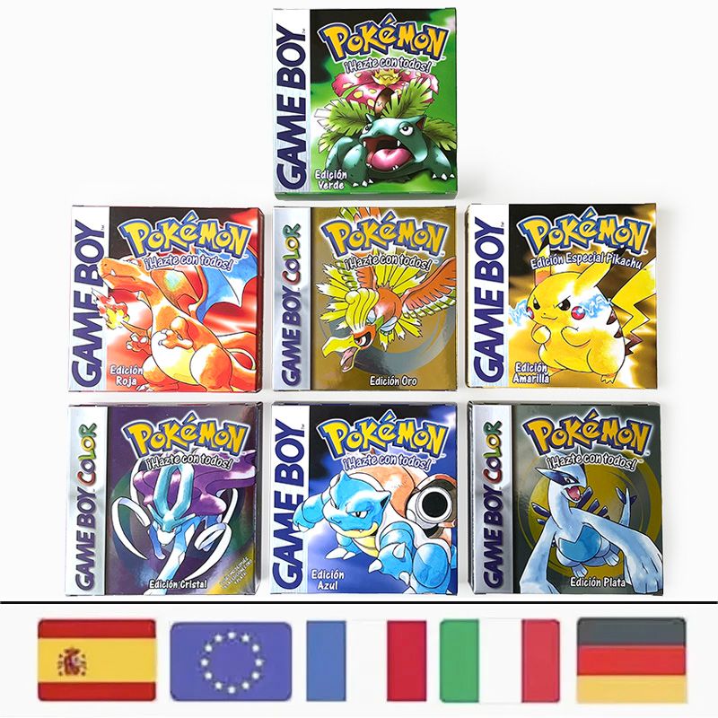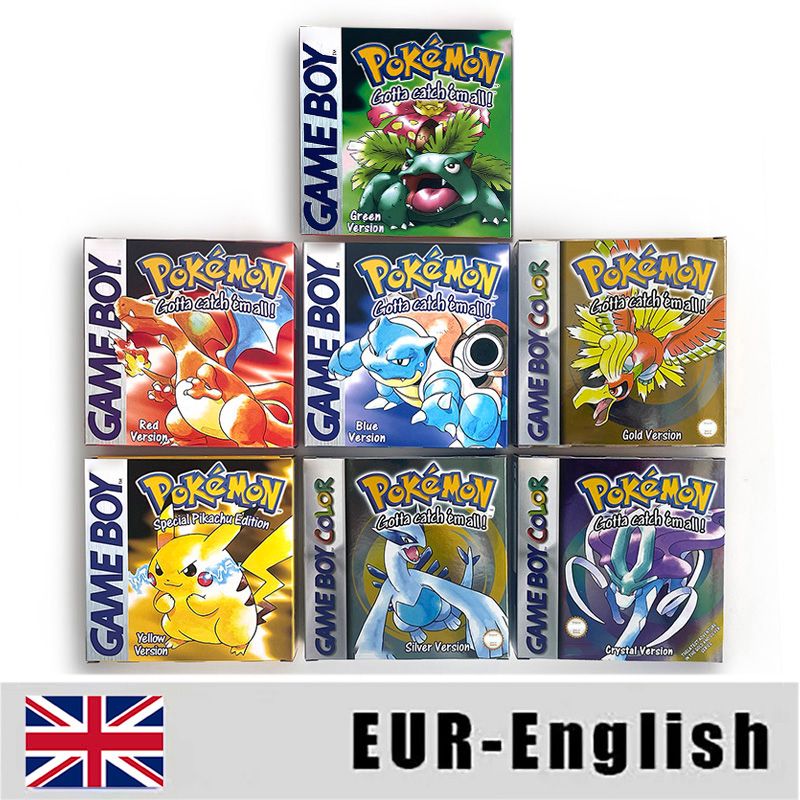 5 languages Pokemon Crystal Yellow Green Red Gold Blue Silver GBC Game Beautifully Sealed B0X