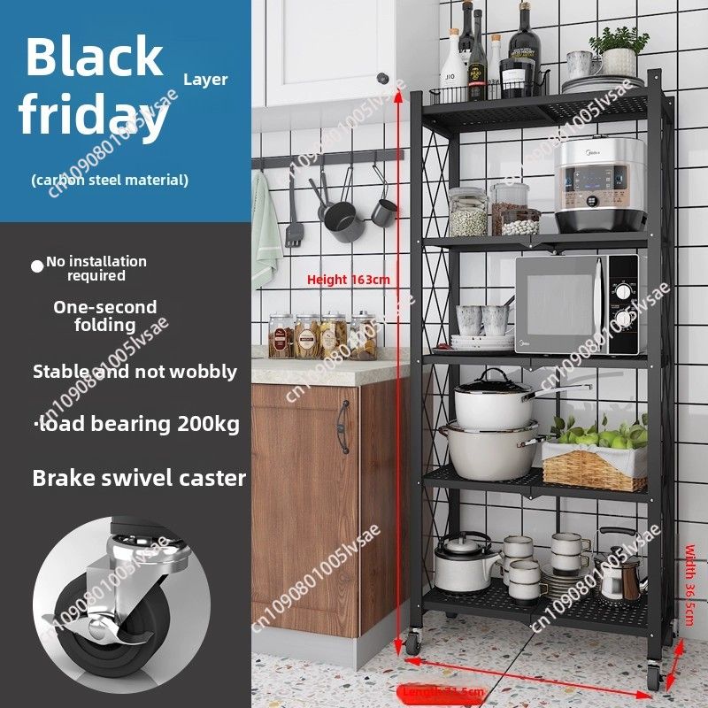 5-Layer Metal Removable Power Rack Foldable Stackable Household Kitchen Storage