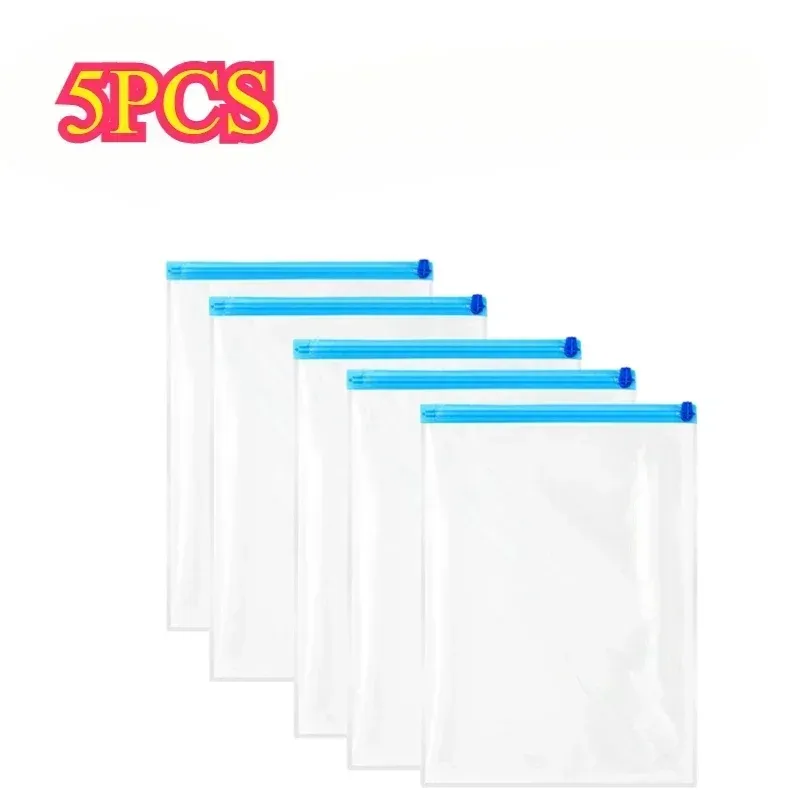 5 Pack Vacuum Compression Bags for Travel-Reusable Space Saving Storage No Pump Needed, Leak-Proof Organizer for Clothes&Luggage
