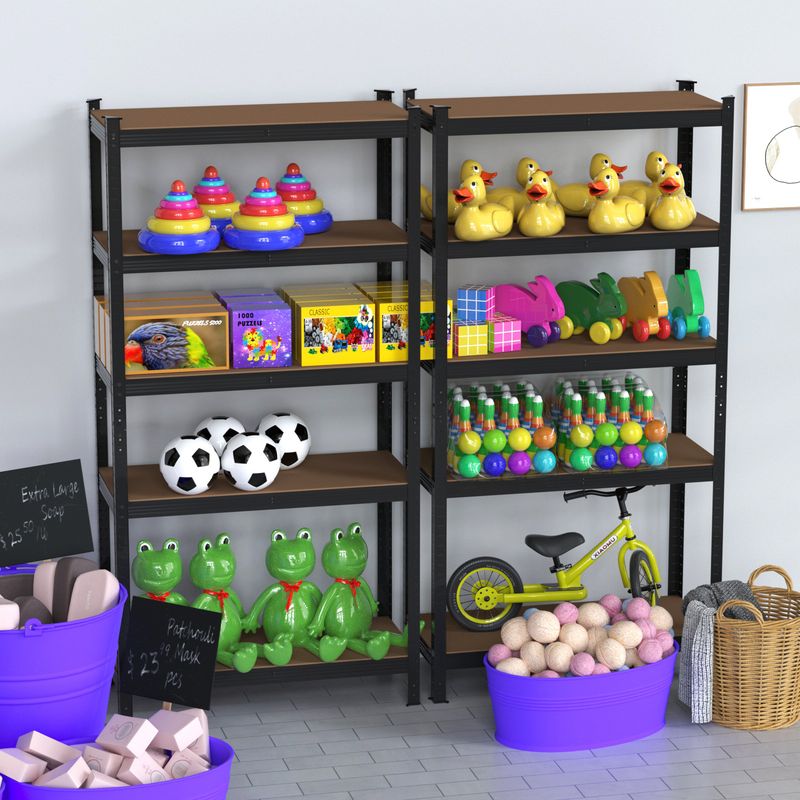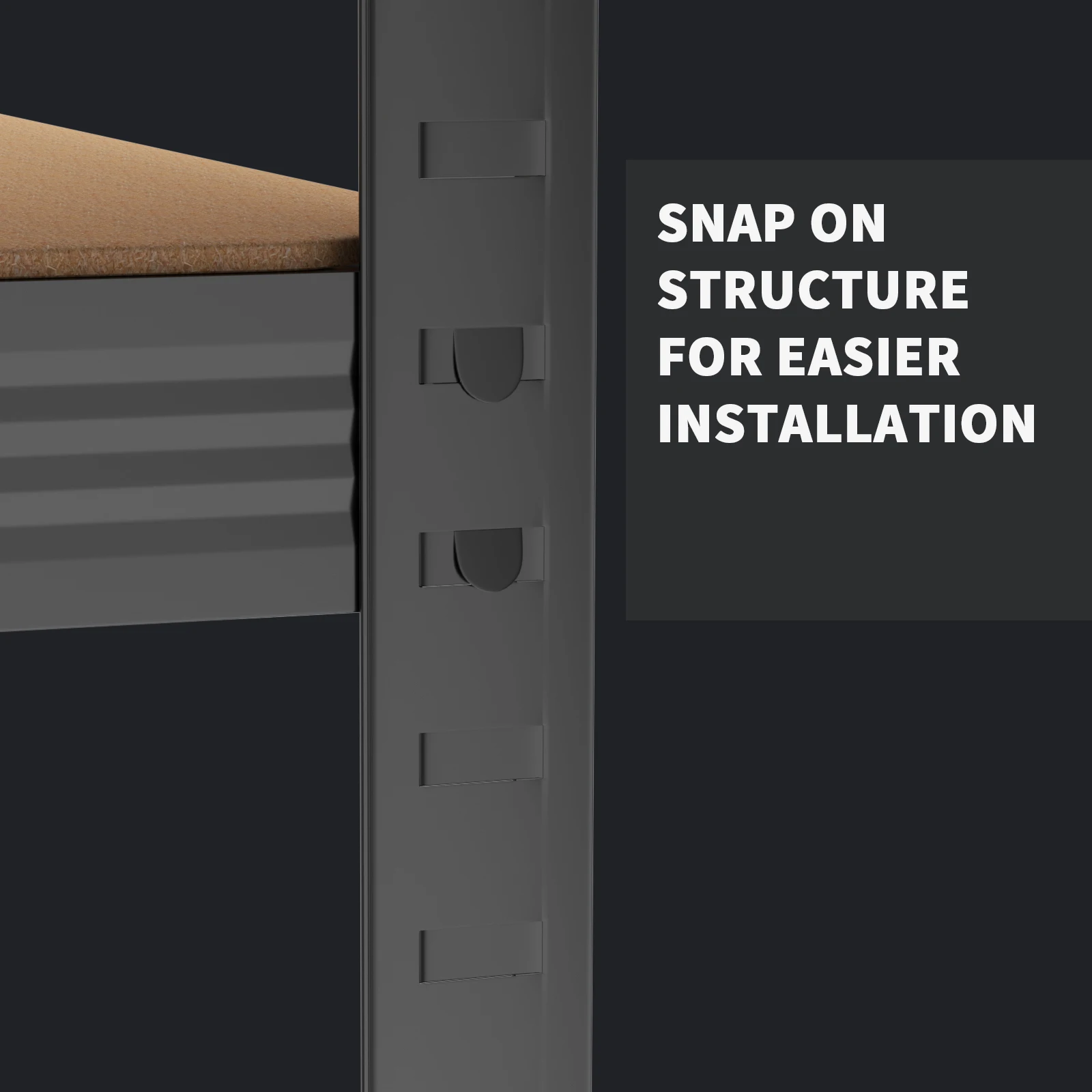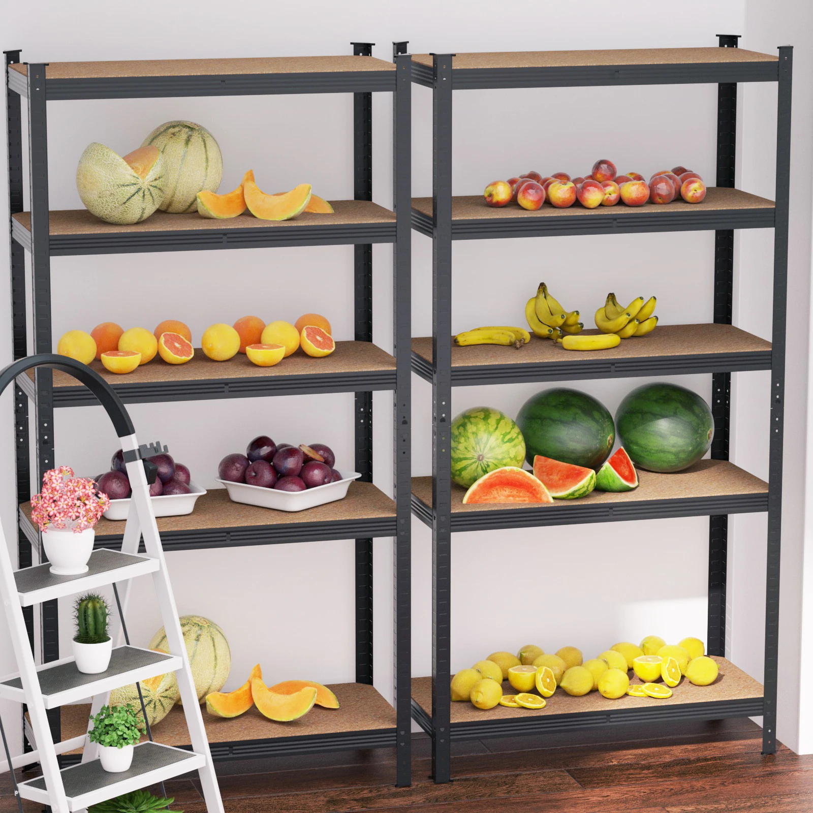 Robust: sturdy galvanised steel pillars, additional beams and strong MDF shelves ensure a stable stand and a load capacity of up to 875 kg (175 kg per shelf) - whether it's for tools, supplies, boxes, garden accessories and more!