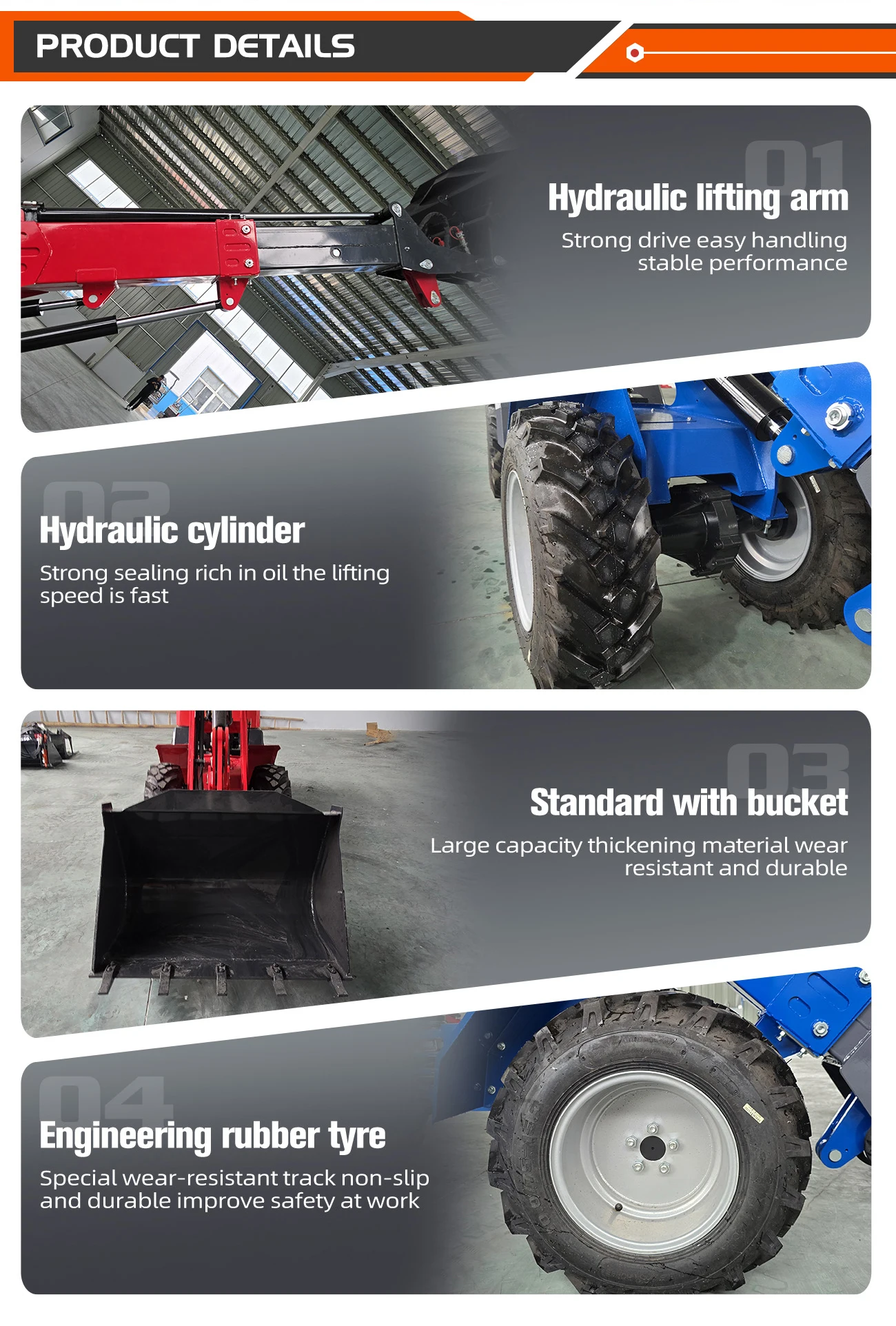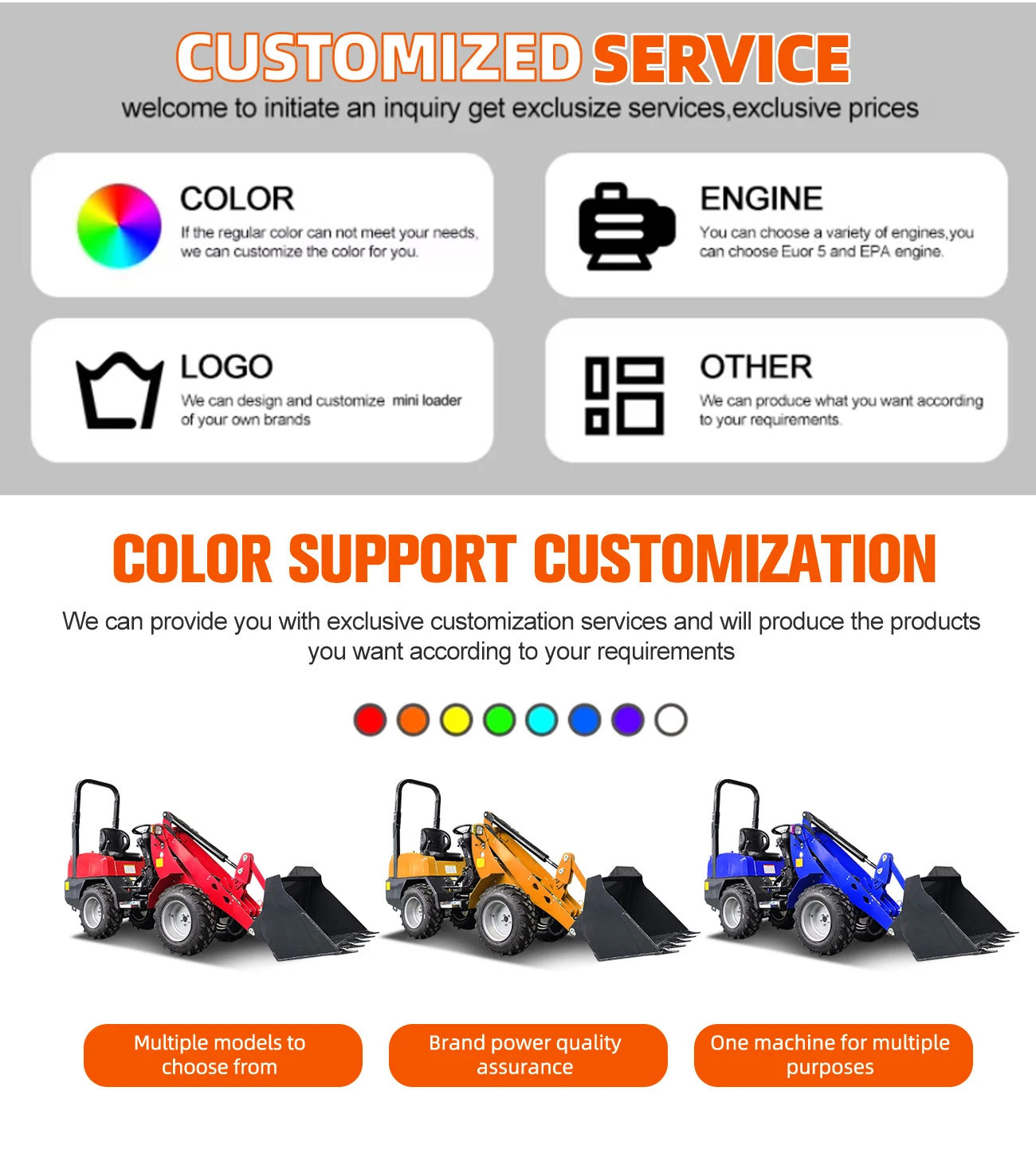 To enhance agents' sales performance, we support customization across various aspects, including product appearance, engines, paintwork, accessories, cabs, tires, and seats.