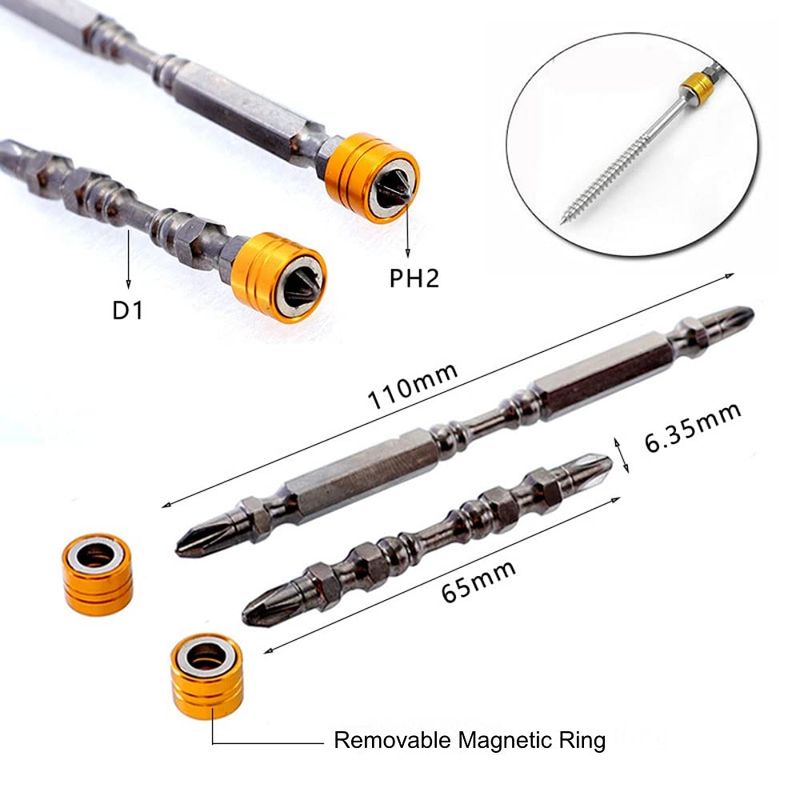 Strong magnetic, screwdriver bits with magnetic ring, can be adsorbed firmly screw,less damage to the screw. 1/4" hex shank, approx 1/4" diameter, total Length: Approx 65mm & 110mm.