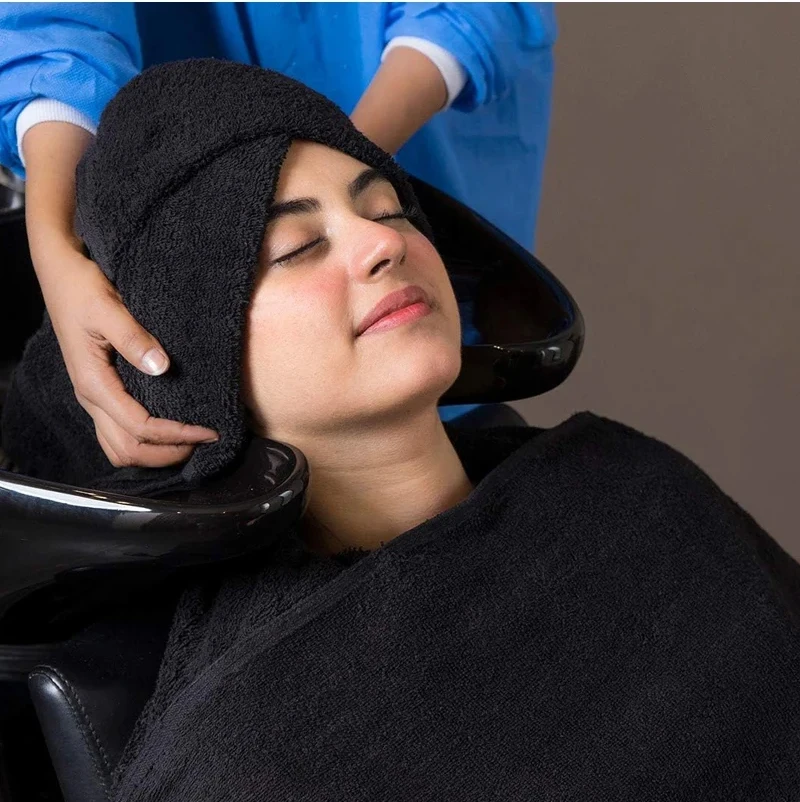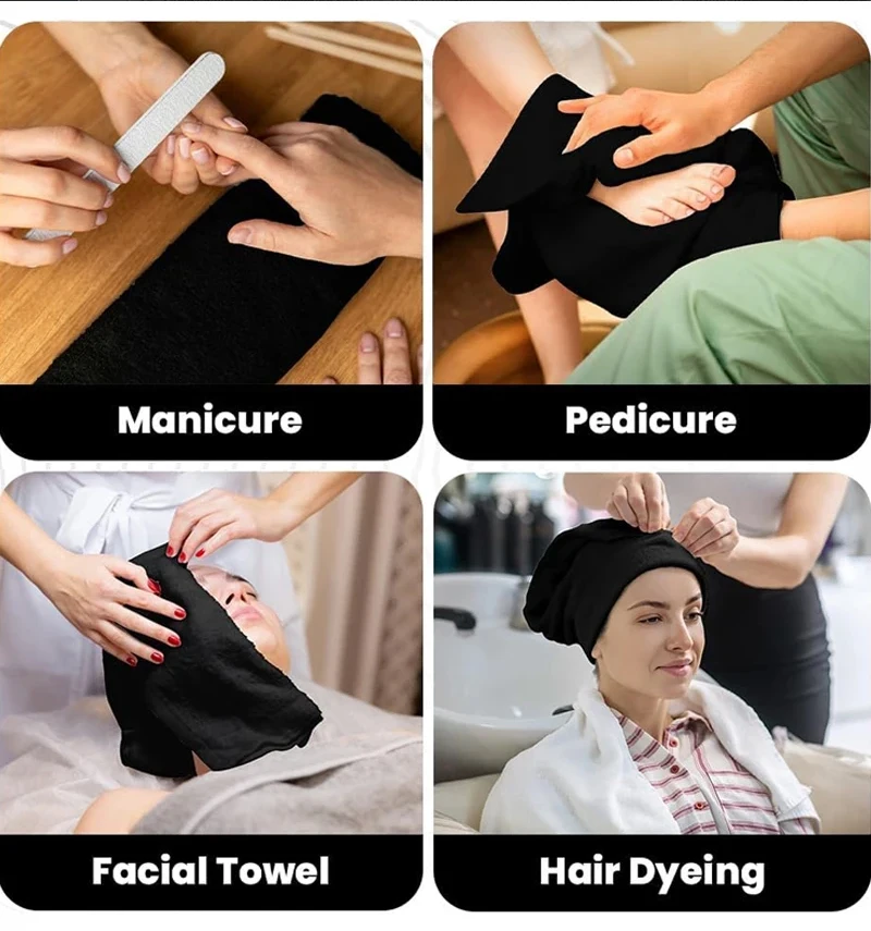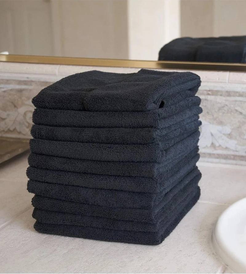 5/10Pcs Black Microfiber Salon Hair Drying Towel Guest Used Hand Towels For Hair Stylist For Hotel Resort Spa